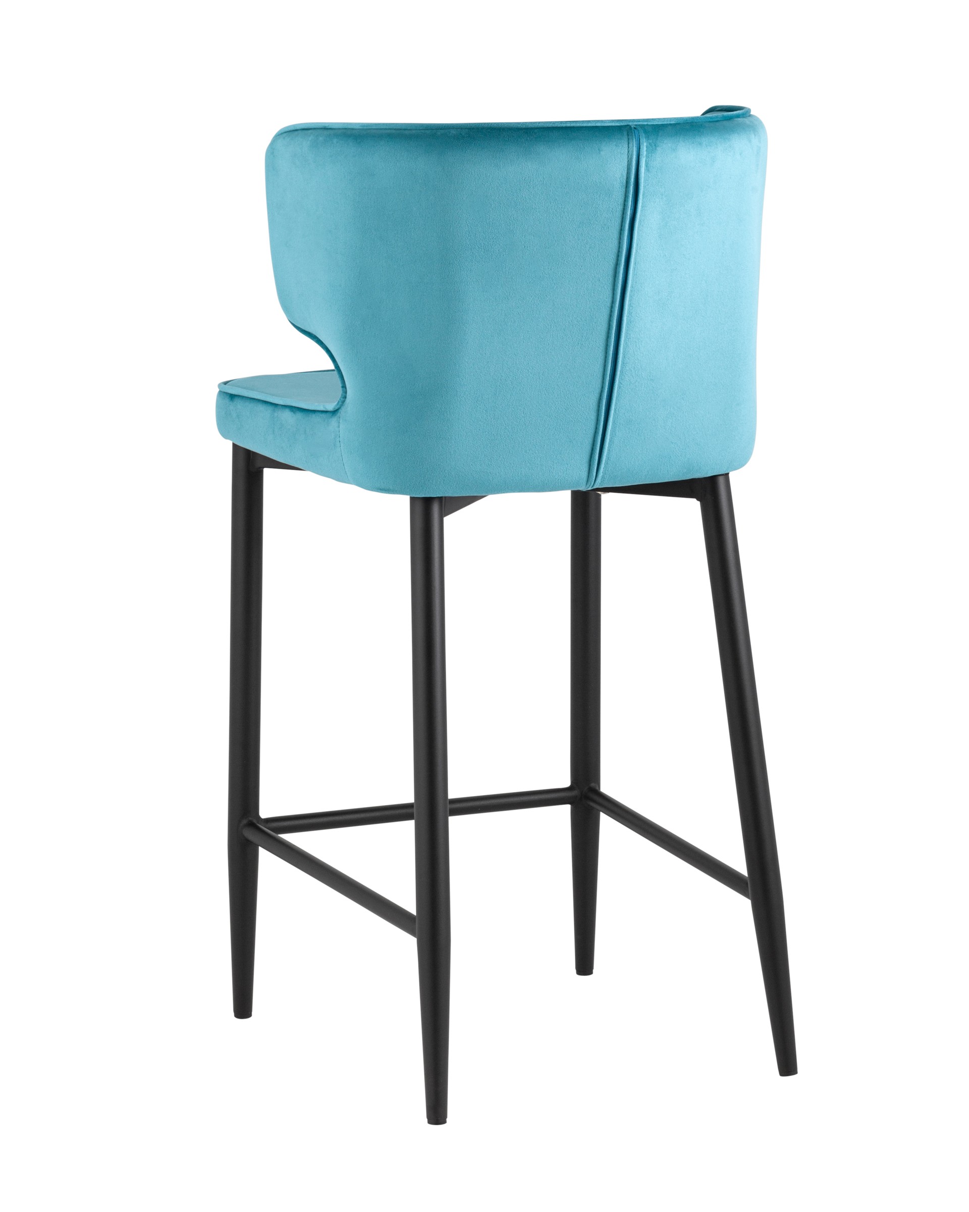 Мягкая обивка выполнена из велюра - прочного износостойкого материала. Прямые металлические ножки в черном цвете имеют нестандартную форму в виде перевернутого конуса, поэтому обеспечивают хорошую устойчивость и делают стул оригинальным. Удобная подножка позволяет расположиться максимально комфортно.