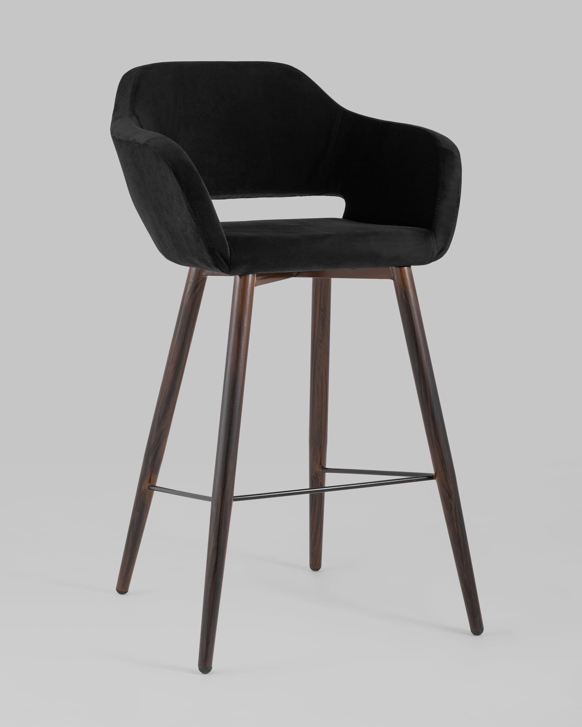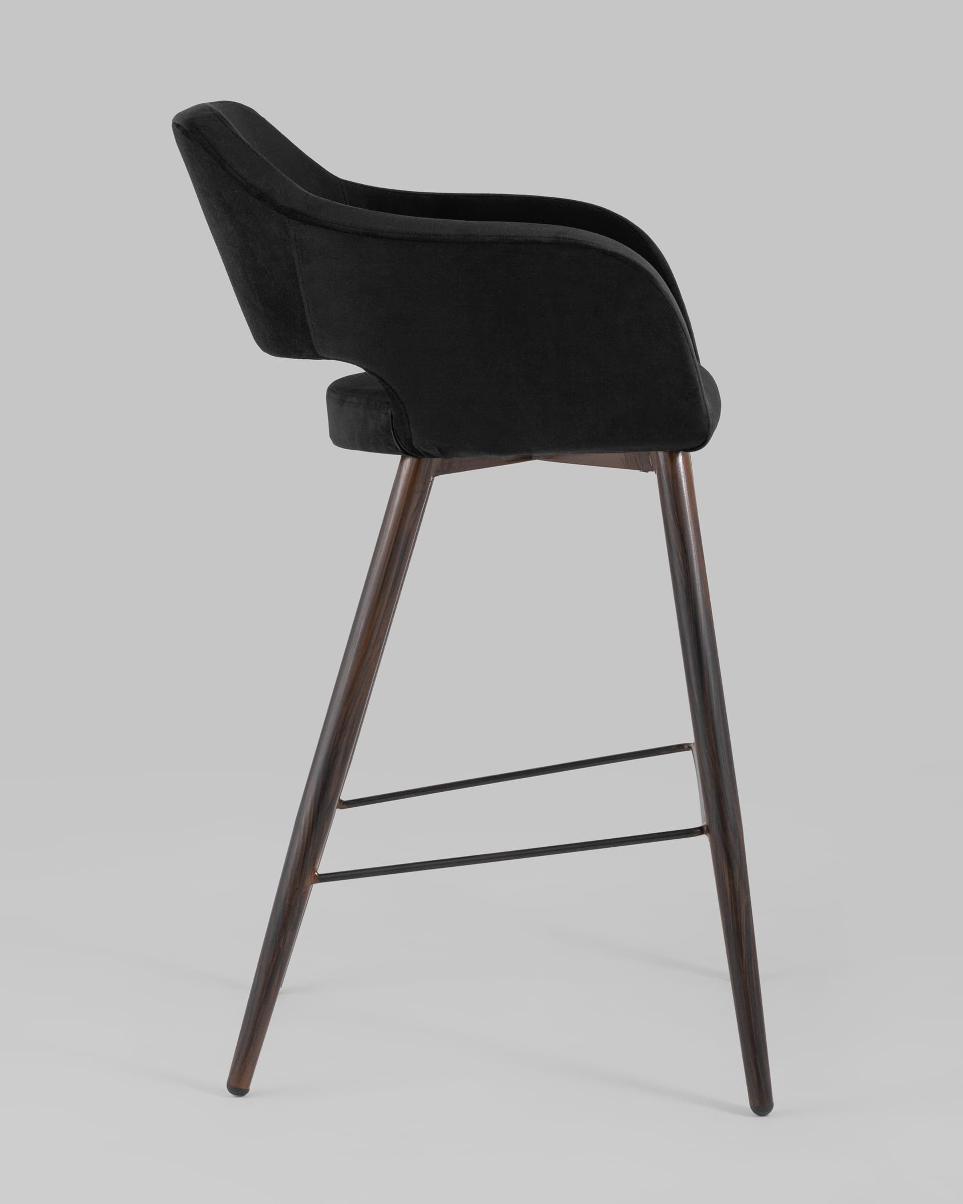 Стул барный Саймон обивка велюр черный ножки металл темное дерево