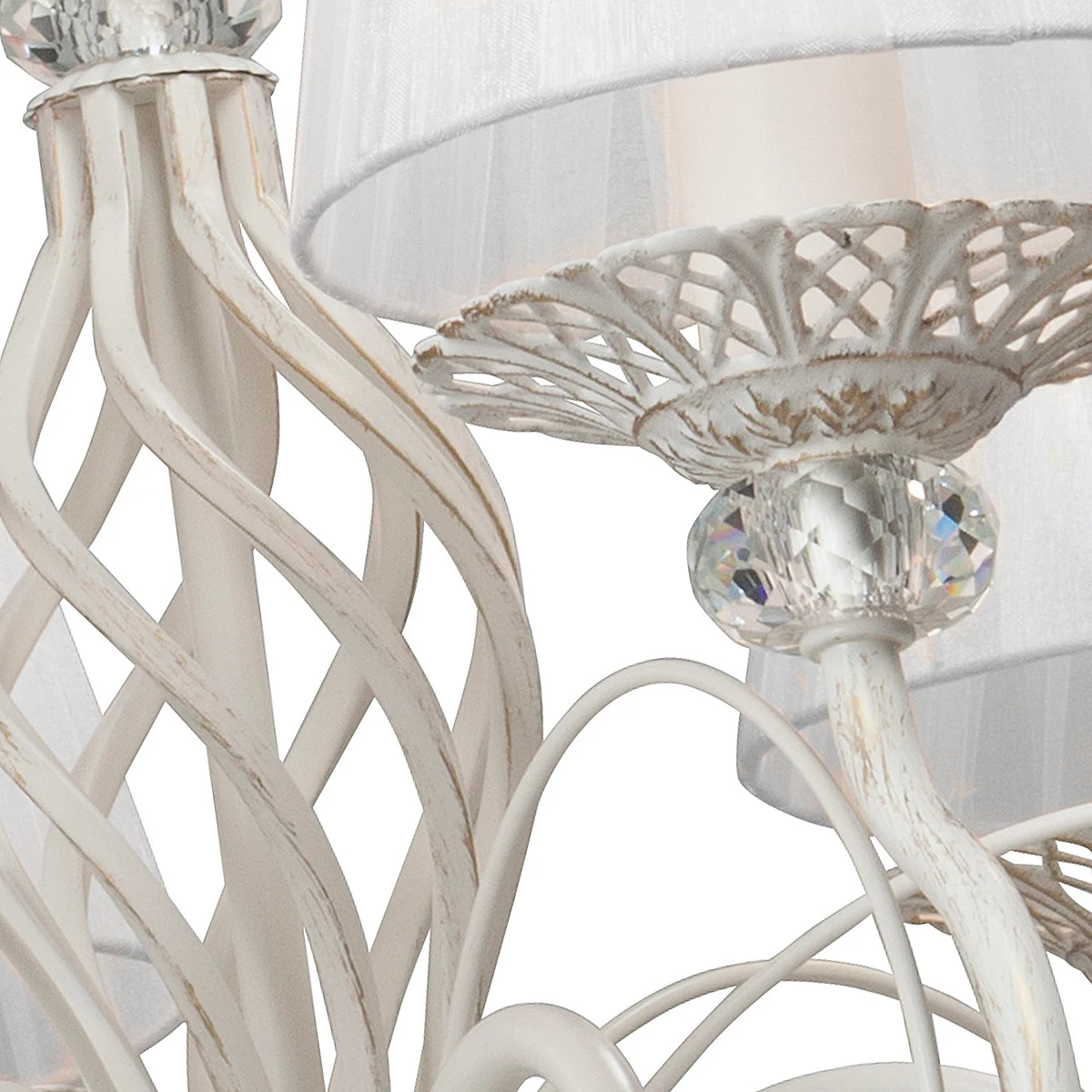 Подвесная люстра Vitaluce 1188 V1188/6 от Vitaluce, подходит для спальни, в стиле классика. Материал — металл, цвет бело-бежевый матовый с золотом, плафон из ткань, цвет плафона белый, форма плафона — круглый абажур. Модель имеет 6 ламп, цоколь E14, мощность 360 Вт. Крепление — крюк. Габариты: высота 890 мм, ширина 600 мм, диаметр 600 мм. Декор — хрустальные подвески, коллекция V1188.