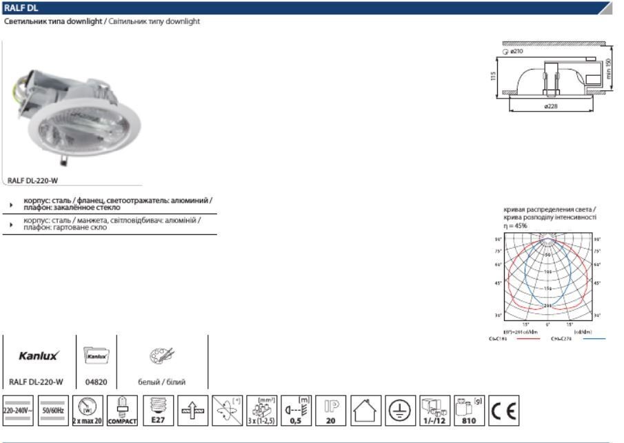 Встраиваемый светильник Kanlux Ralf 4820