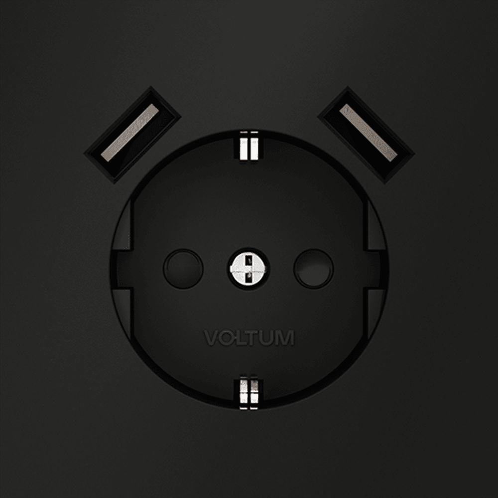 Розетка встраиваемая VOLTUM S70 с заземлением и защитными шторками, 16А, с USB, A+A, (черный матовый VLS040408