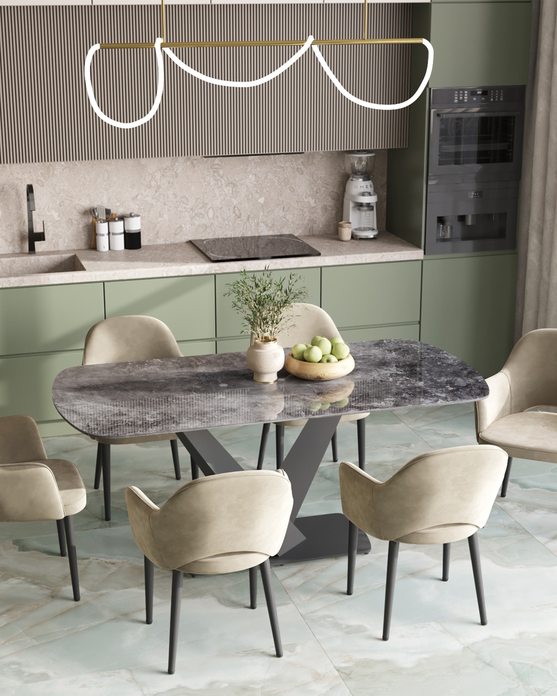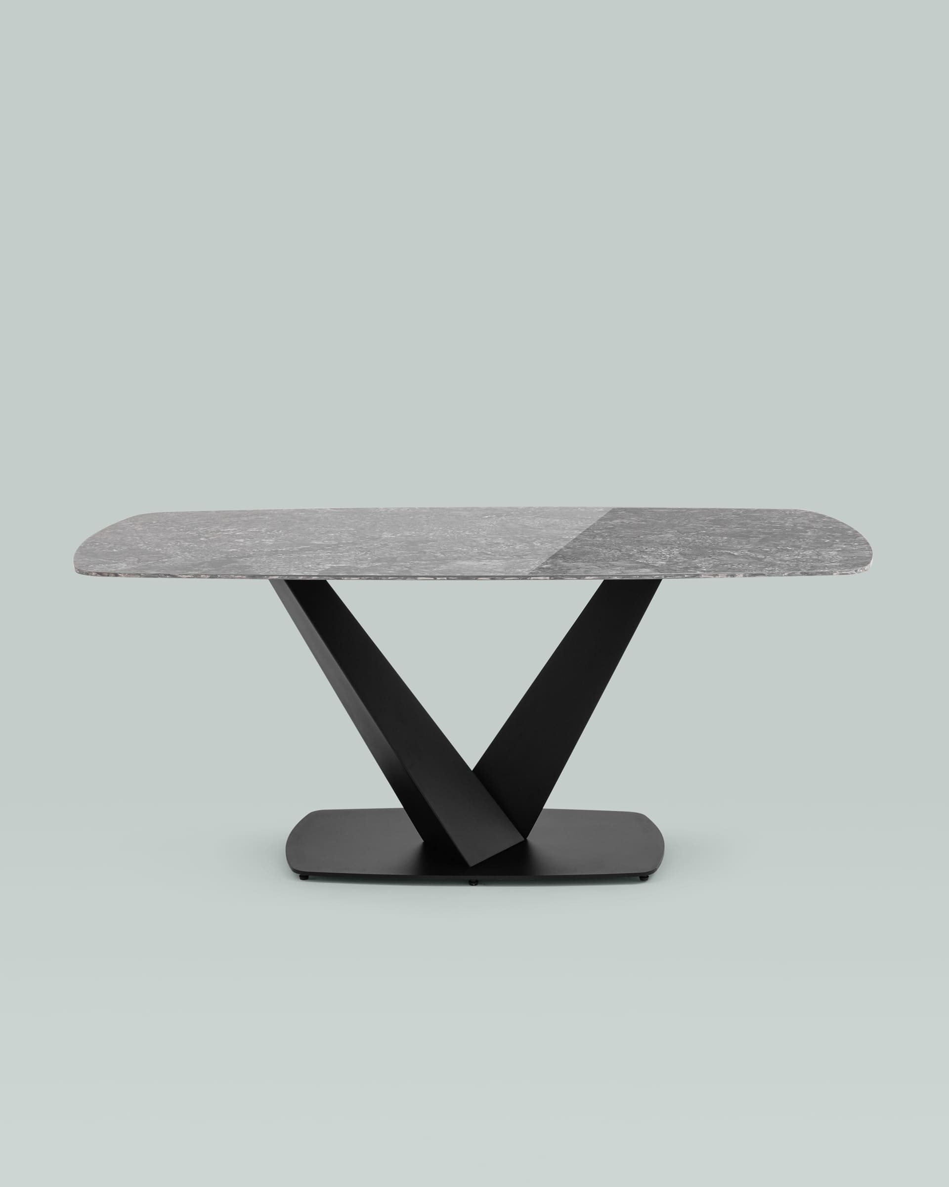 Стол обеденный Аврора 180*90 керамика черная столешница под мрамор основание металл