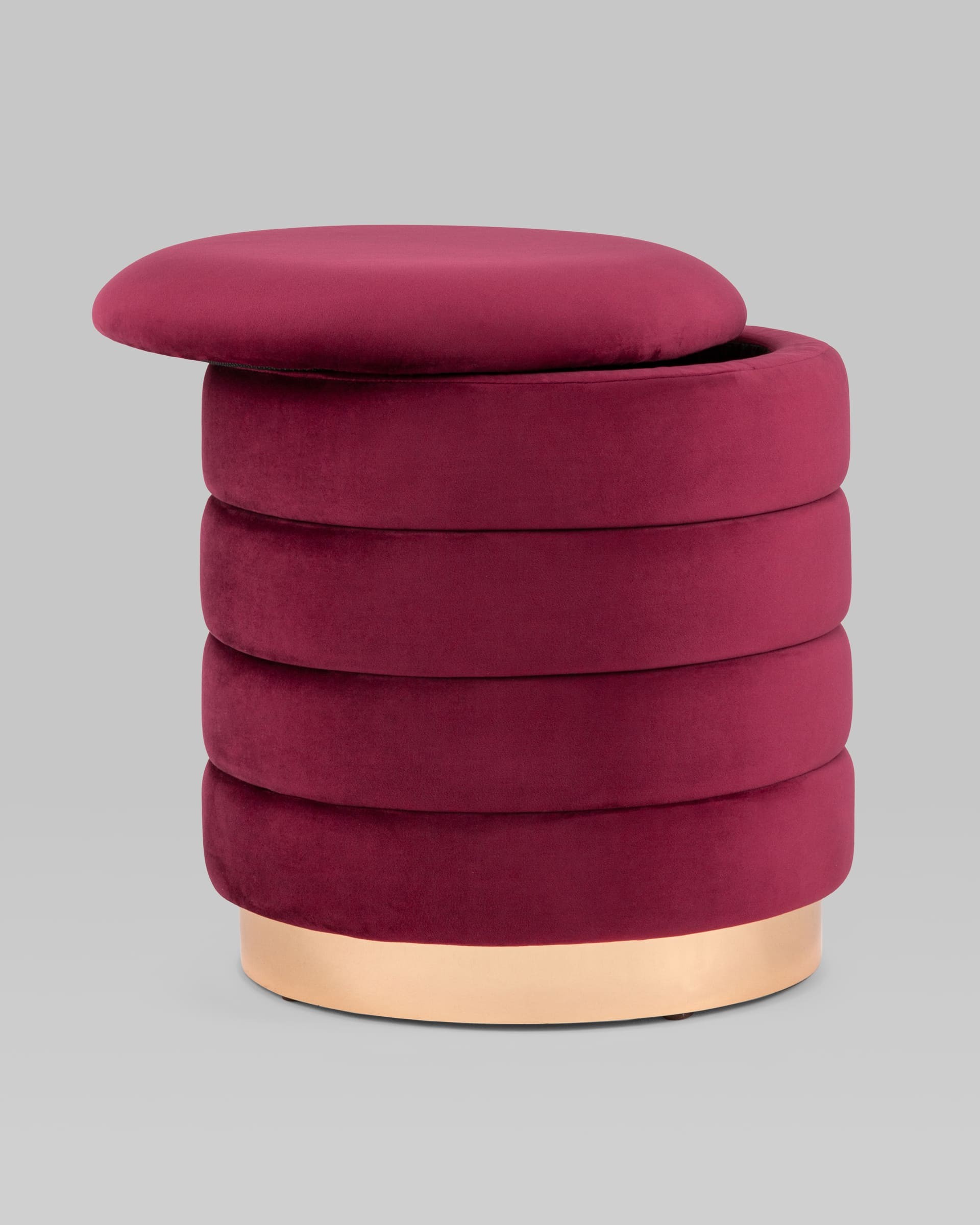 Пуф с ящиком Франсис велюр винный с декорированным основанием