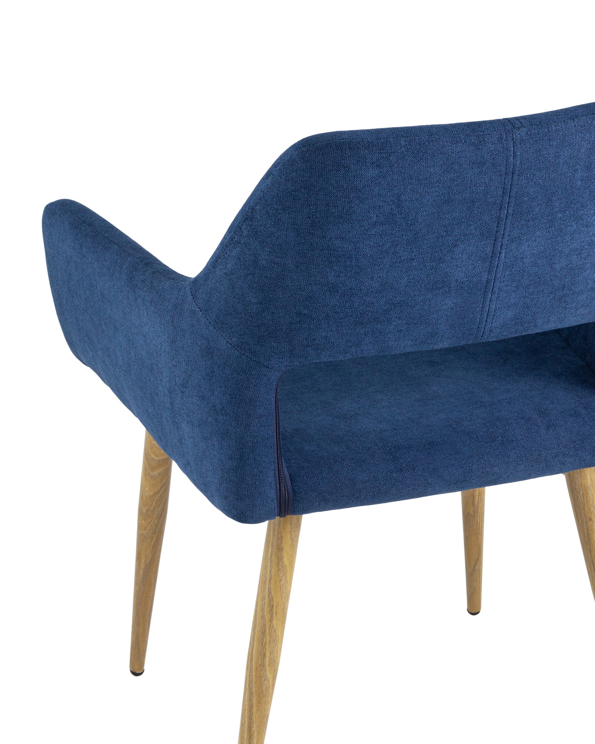 Стильный и мягкий кухонный стул имеет широкую эргономичную спинку и удобные подлокотники. Обивкой послужила высококачественная плотная ткань. Ножки металлические с принтом под дерево.
