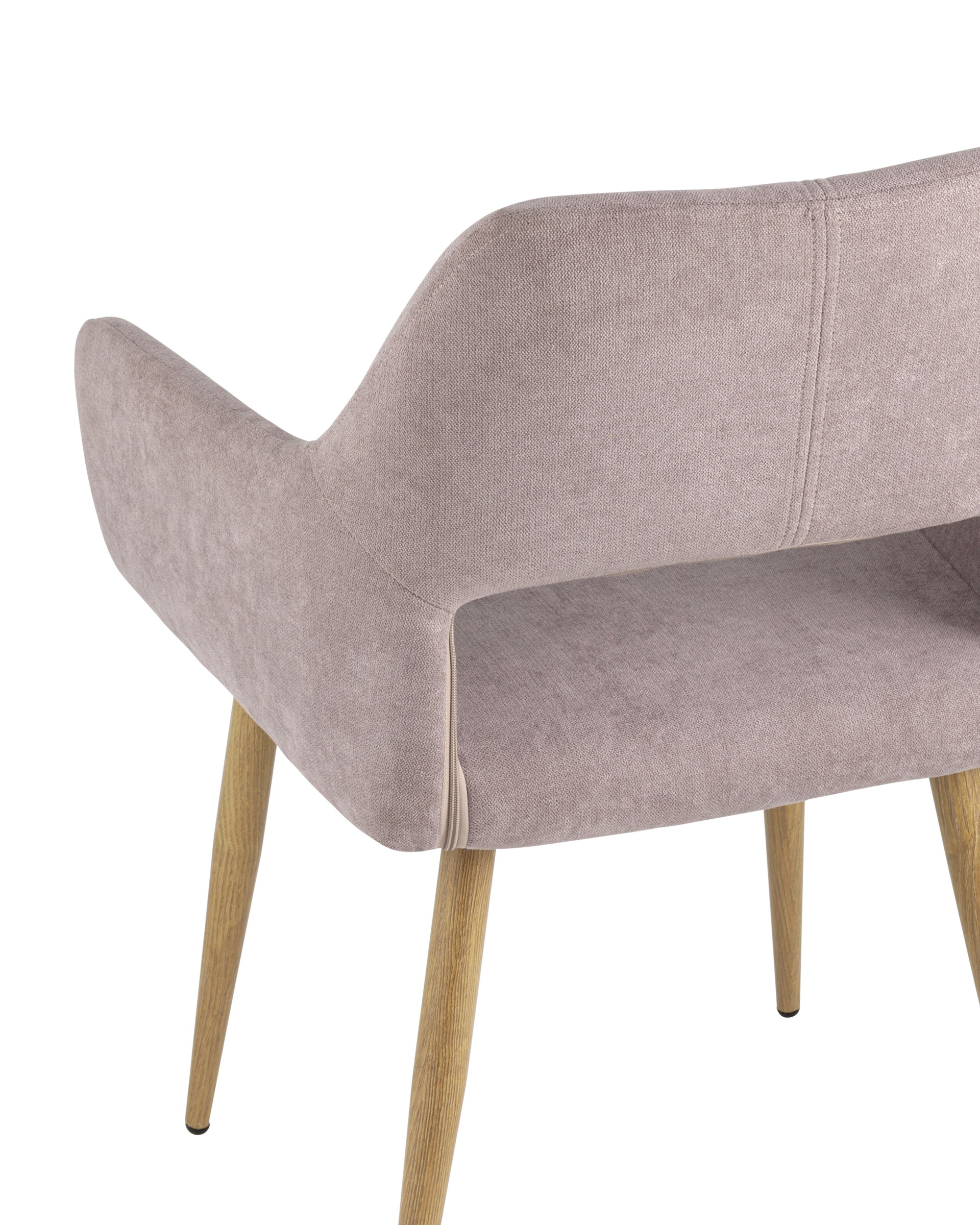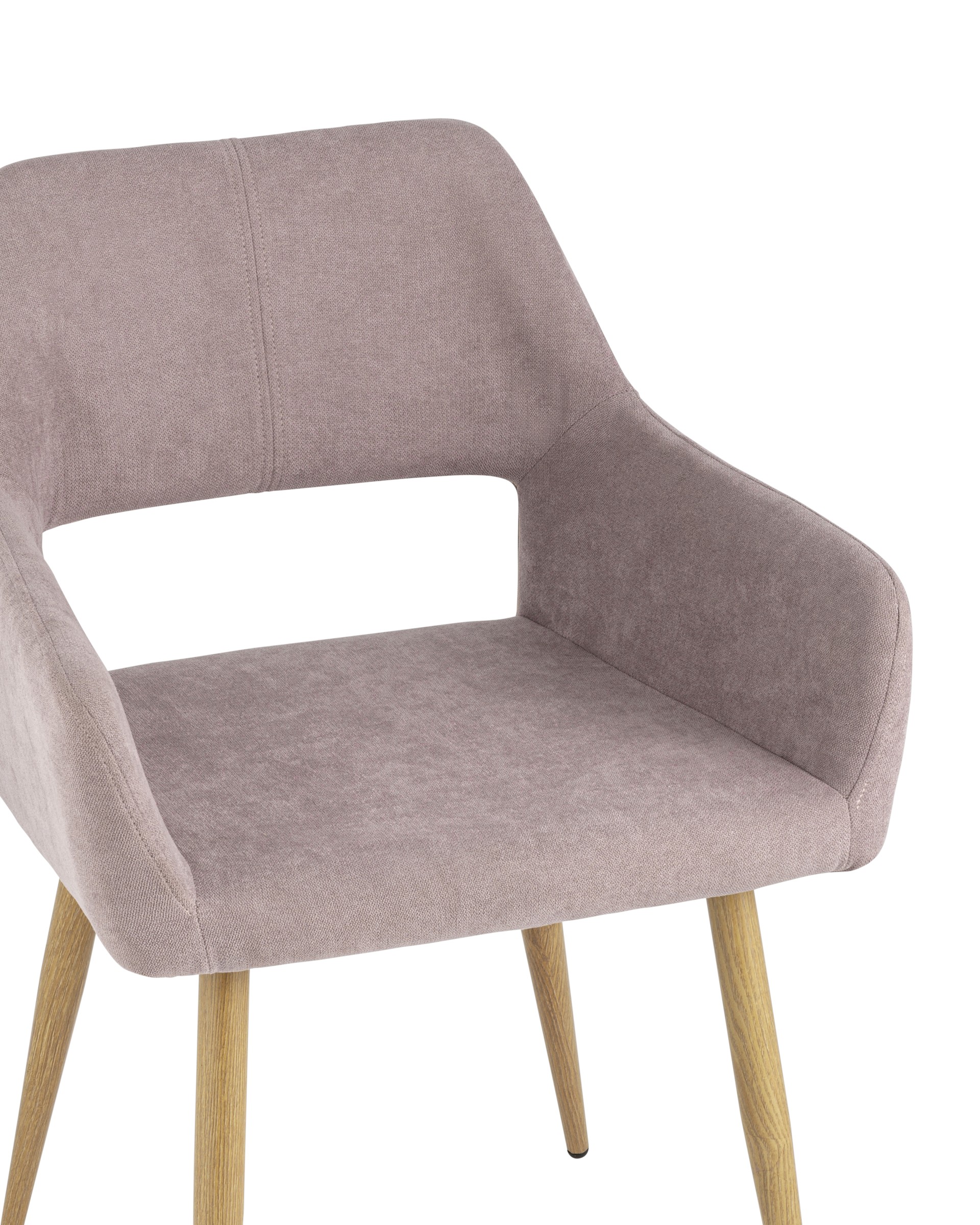 Стильный и мягкий стул имеет широкую эргономичную спинку и удобные подлокотники. Обивкой послужила высококачественная плотная ткань. Ножки металлические с принтом под дерево.