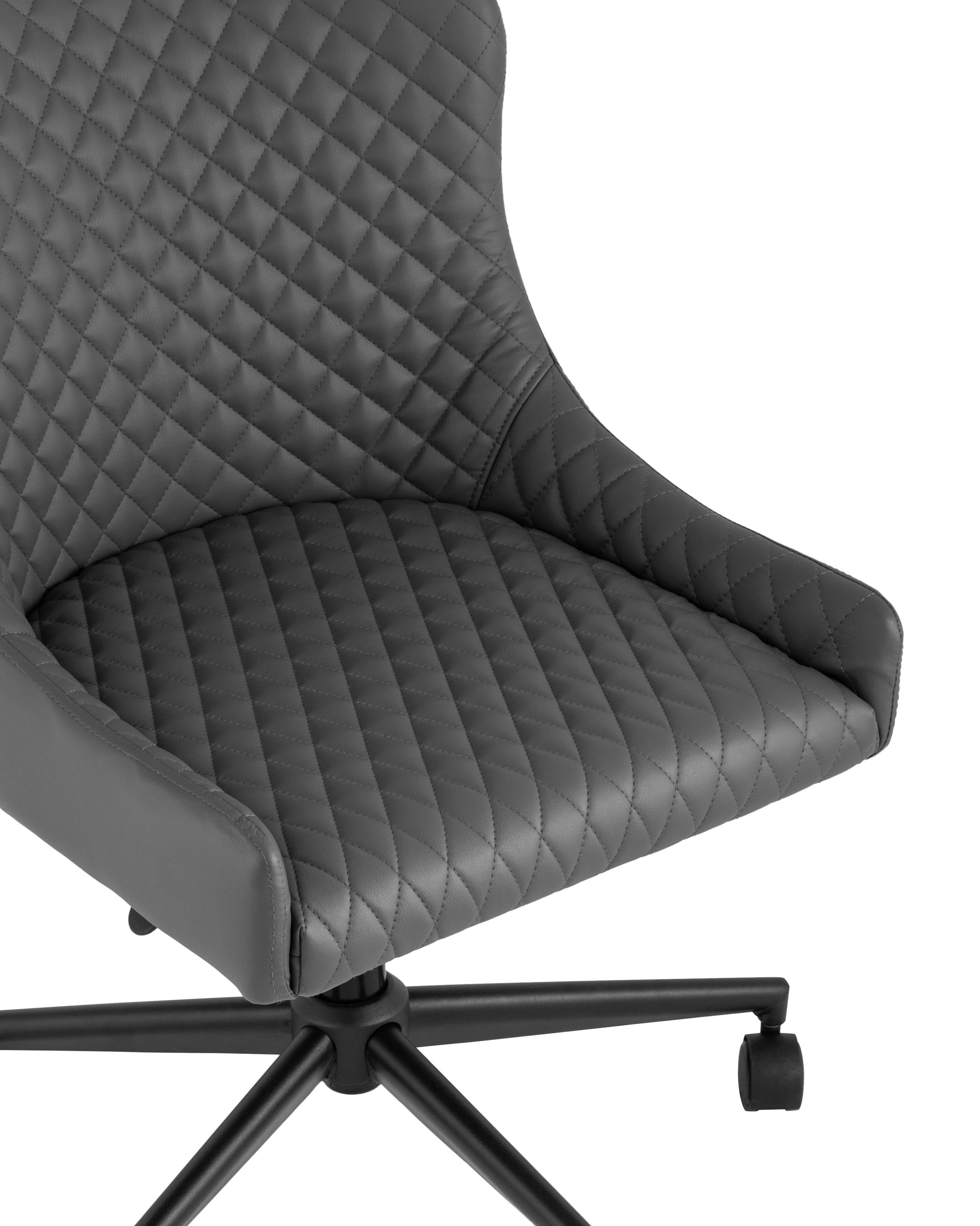 Приятная на ощупь обивка с красивой декоративной строчкой выполнена из экокожи - прочного износостойкого и гигроскопичного материала. Крестовина изготовлена из металла. Стул без подлокотников, подойдет для любого рабочего места. Механизм регулировки - газ-лифт, выбор высоты сиденья - от 40 до 50 см.