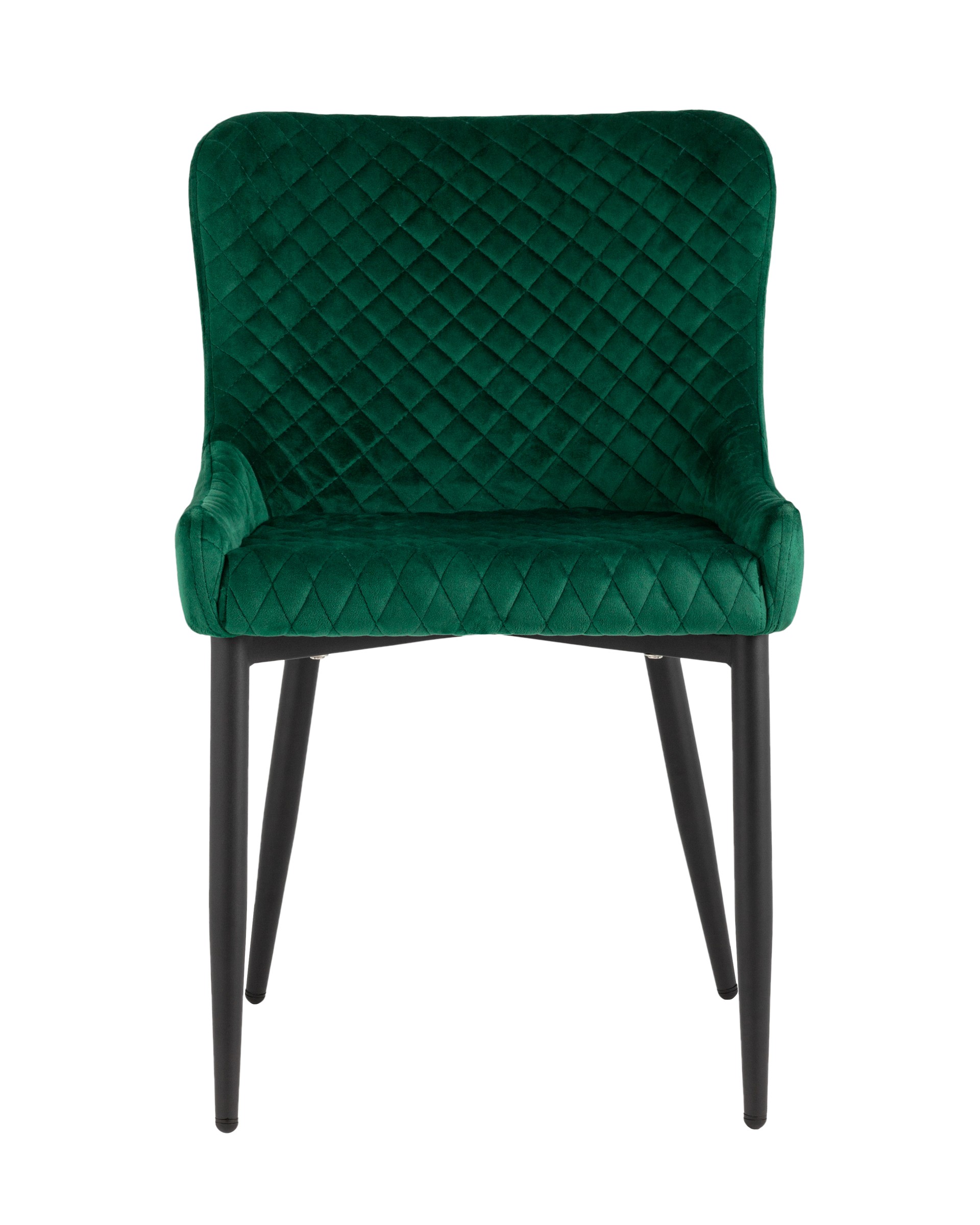 Мягкое прямоугольное сиденье с невысокой спинкой анатомической формы подарит комфорт и уют. В качестве обивки используются прочные износостойкие материалы с декором в виде ромбов. Прямые металлические черные ножки, имеют нестандартную форму в виде перевернутого конуса, поэтому обеспечивают хорошую устойчивость и делают стул оригинальным. Изделие прекрасно смотреться как отдельный предмет мебели, так и в комплекте с обеденным столом.