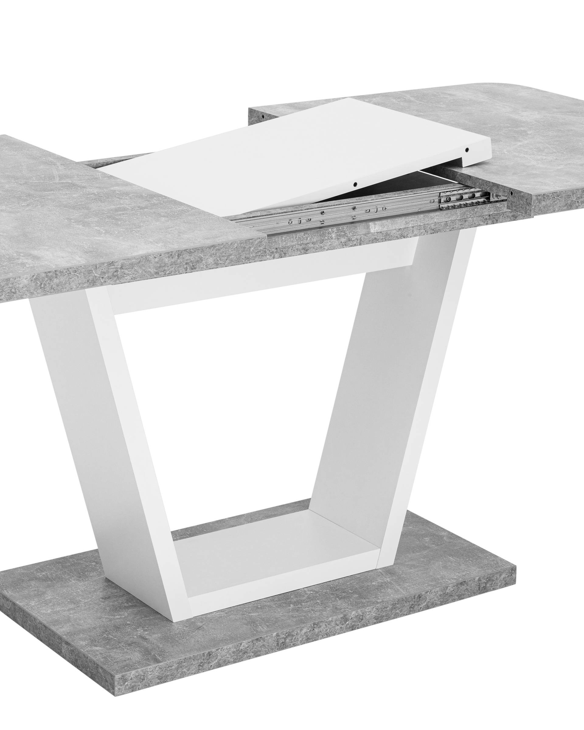 Удобный и стильный раздвижной стол в цвете бетон.