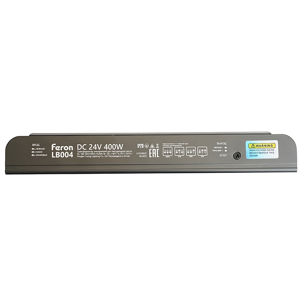 Трансформатор для светодиодной ленты с плавным пуском и диммированием 400W 24V IP20 Feron LB004 52127