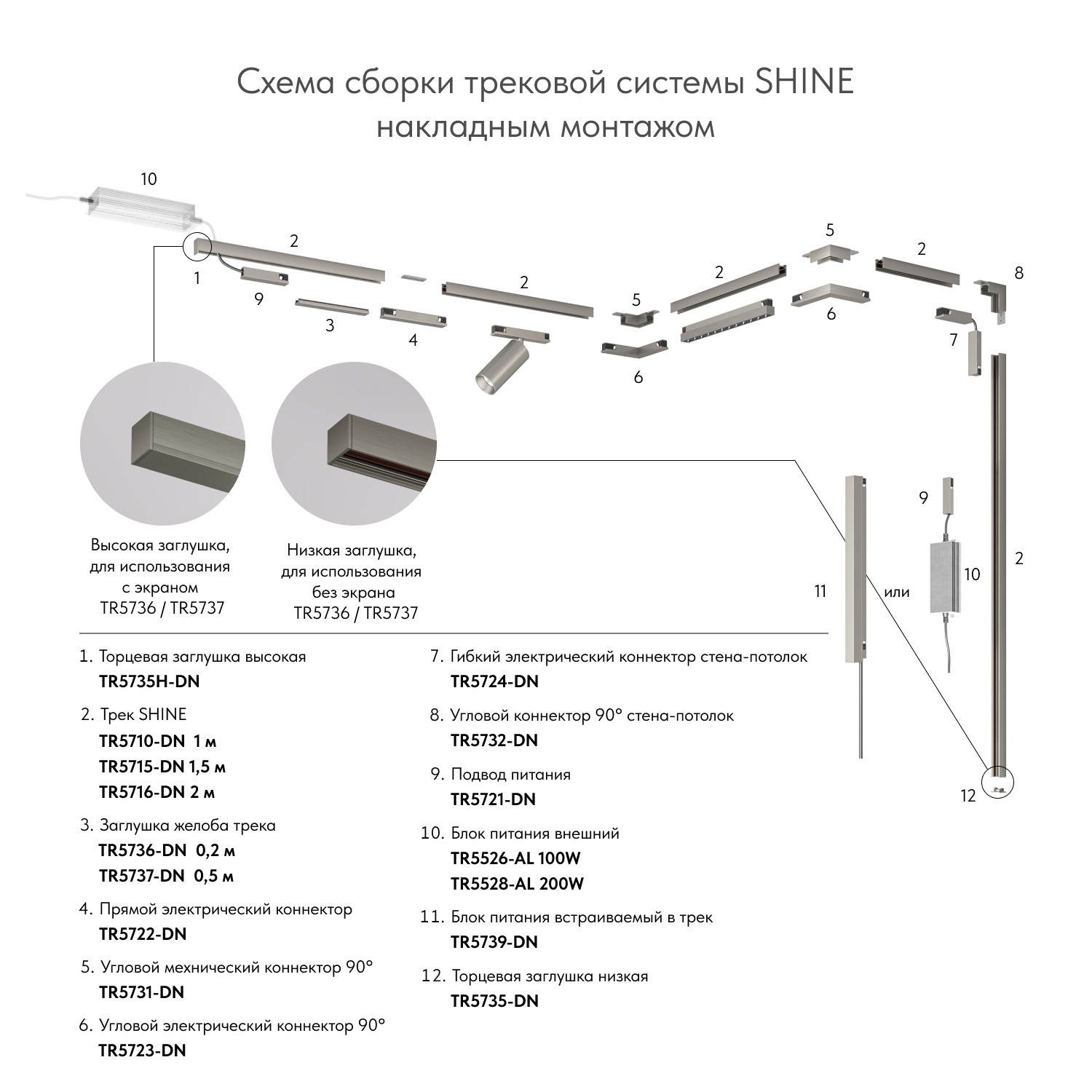 Подвод питания универсальный (середина/торец) для трека SHINE BASE TR5721-DN